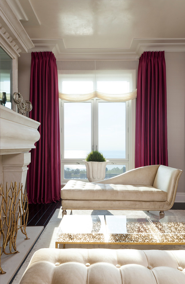 Lors de la décoration de fenêtres en néoclassique, utilisez des rideaux unis ou des textiles à motifs floraux. La palette de couleurs comprend des nuances sobres et atténuées de brun, bleu, turquoise, beige et gris. Conformément au statut néoclassique, il est nécessaire d'acheter des rideaux en tissus coûteux: velours, brocart, ottoman, satin, lin.