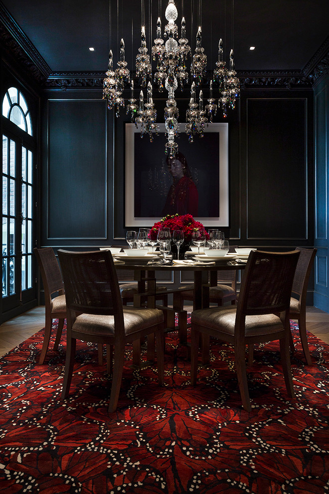 Le tapis n'est pas la meilleure option pour ce style, mais si vous décidez de l'utiliser, achetez du matériel de haute qualité avec un ornement.