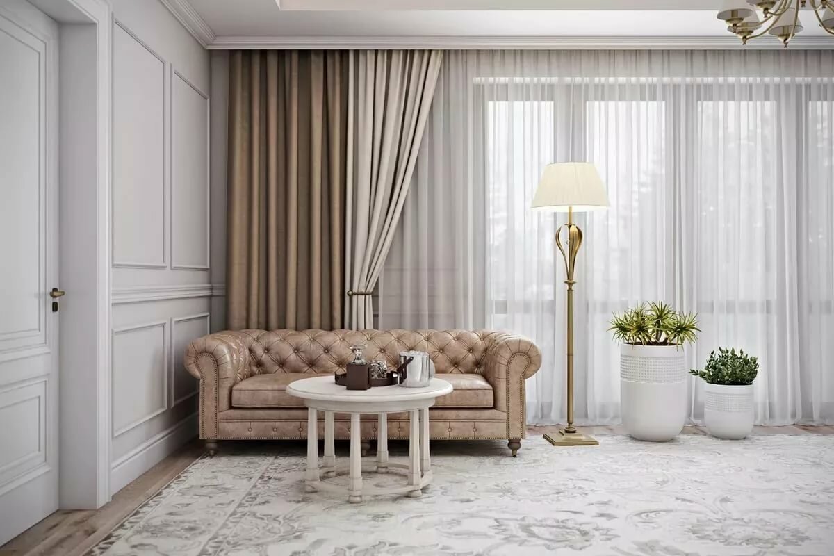 Les teintes douces et calmes sont idéales pour décorer le salon dans le style néoclassique.
