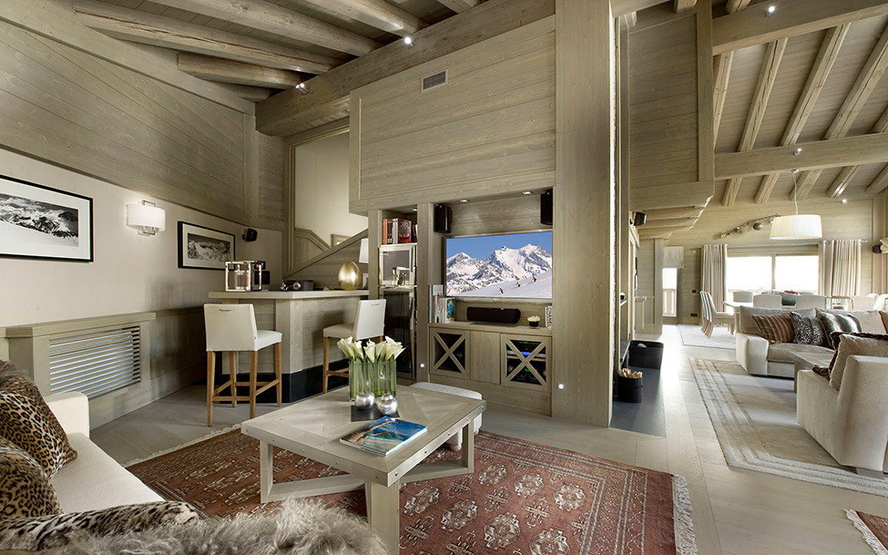 L'intérieur de style chalet est apparu dans l'ancienne province française de Savoie. Il a absorbé l'esprit rustique des maisons alpines en bois. Grâce au confort et à la commodité, cette conception est populaire après des siècles.