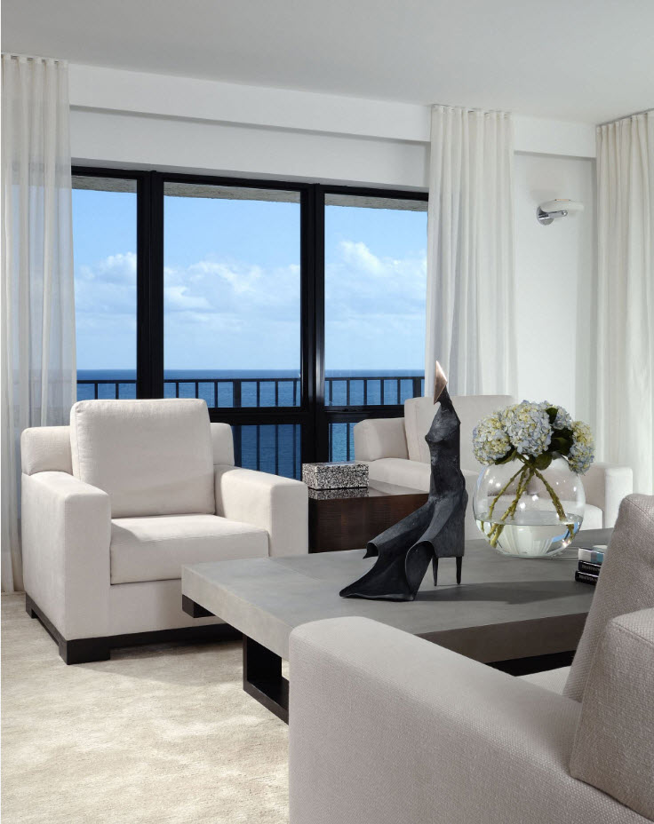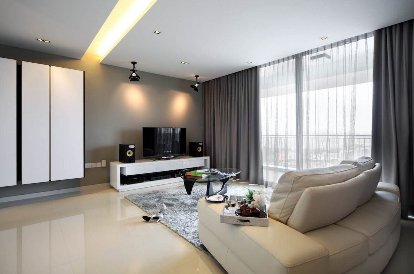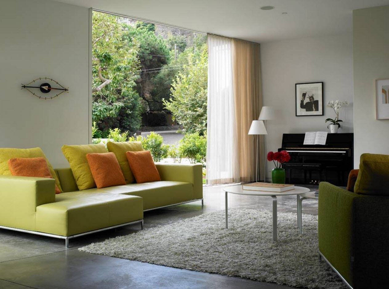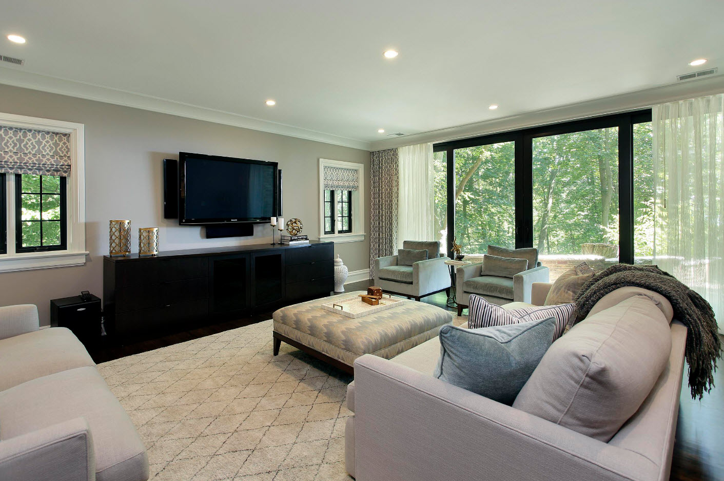 Cette option de conception convient aux salons avec fenêtres panoramiques et aux surfaces moyennes ou grandes.