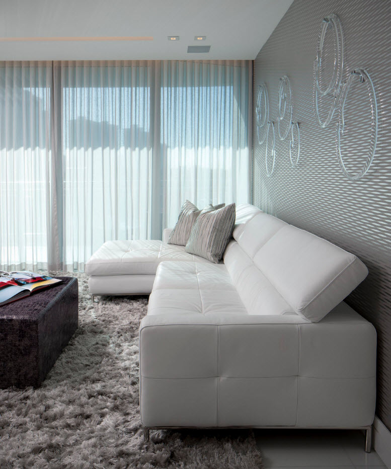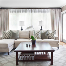 Le voile blanc comme neige s'intègre organiquement dans n'importe quelle conception du salon, aide à créer une image claire, aérée et propre de la pièce.