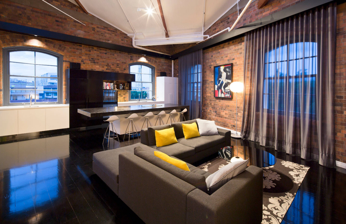 Pour les intérieurs high-tech, loft et industriels, privilégiez les tissus synthétiques soulignés, de structure uniforme et peints en une seule couleur.