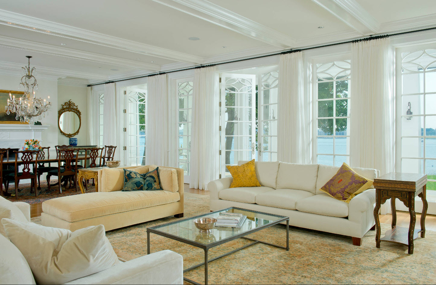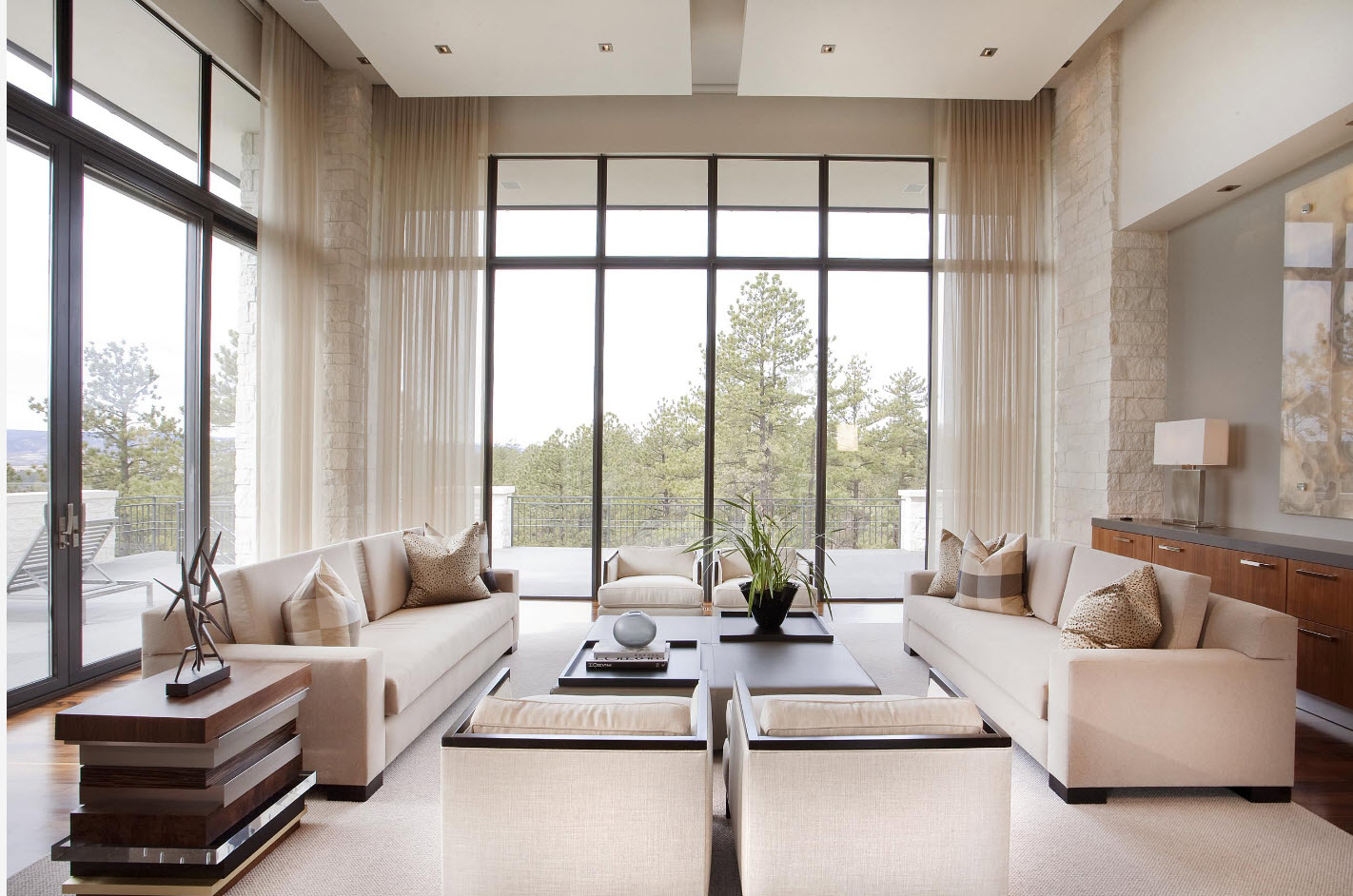 La combinaison de tulle léger et translucide et de rideaux traditionnels en tissu dense est idéale pour décorer les fenêtres d'une baie vitrée, quelle que soit la modification.