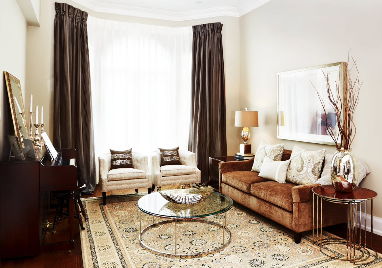 Lors de la conception dans des intérieurs classiques, la préférence doit être donnée aux tulles, qui gravitent vers les couleurs pastel et beige-brun. S'il s'agit d'un classique transformé, il est préférable de choisir une toile de structure uniforme.