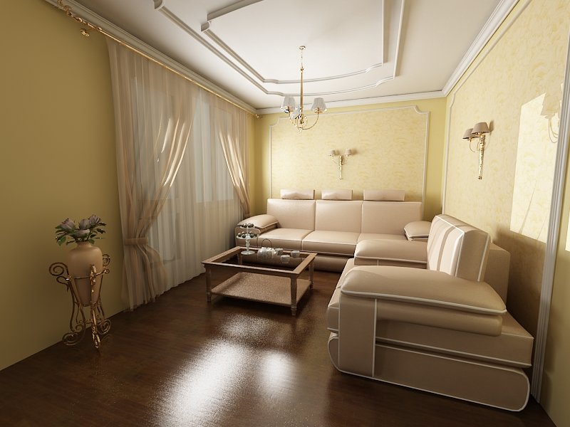 Important! Pour un salon étroit dans un style classique, des éléments pas trop élaborés ou énormes feront l'affaire.