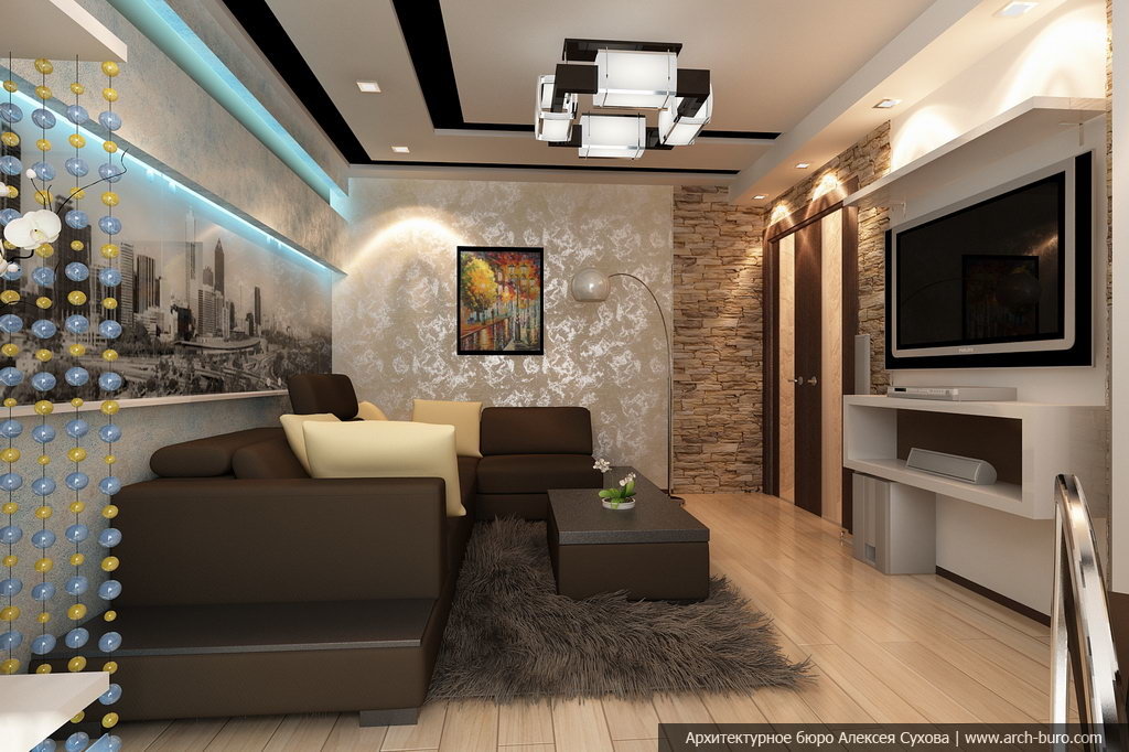 Papier peint combiné dans le salon - une solution moderne pour l'intérieur