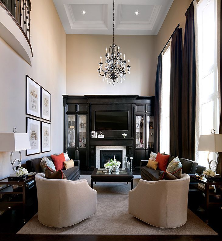 La cheminée convient également à l'intérieur d'un long salon, uniquement si nous parlons d'une maison, pas de Khrouchtchev. Bien que le confort de la cheminée soit possible dans l'appartement: les structures électriques modernes vous permettent de créer un sentiment de maison tout en économisant du m².