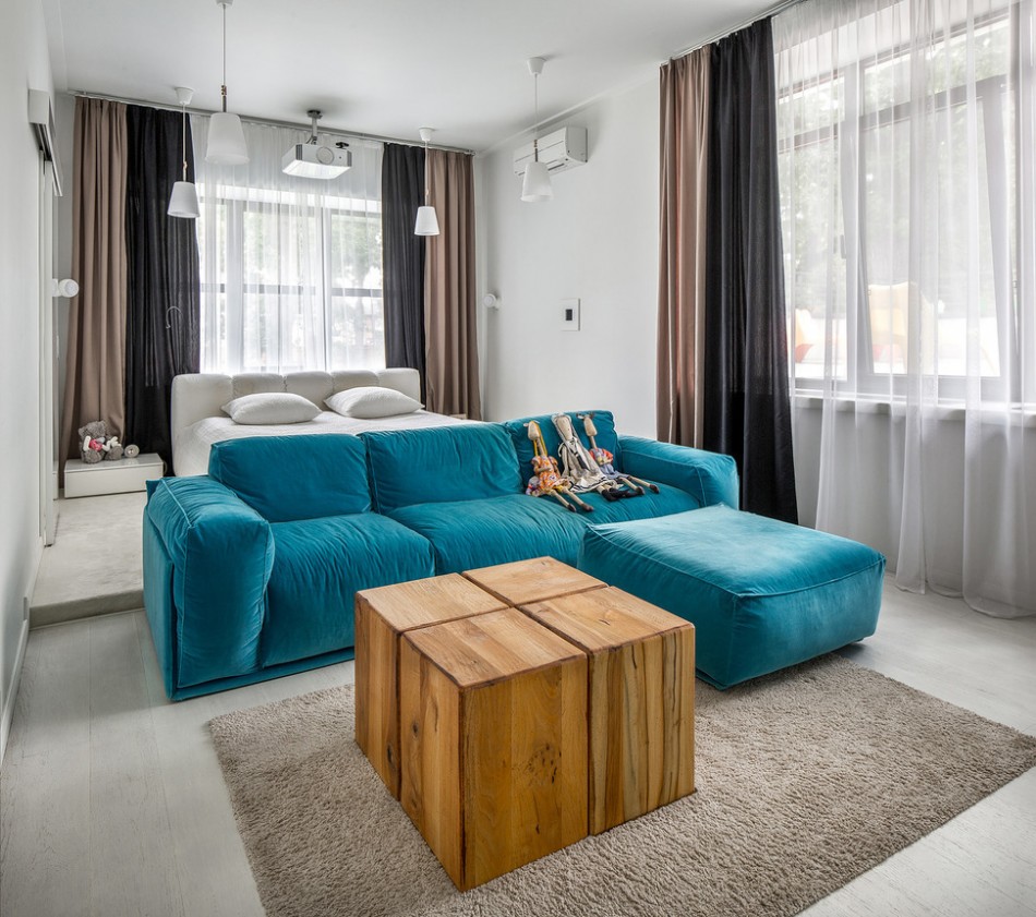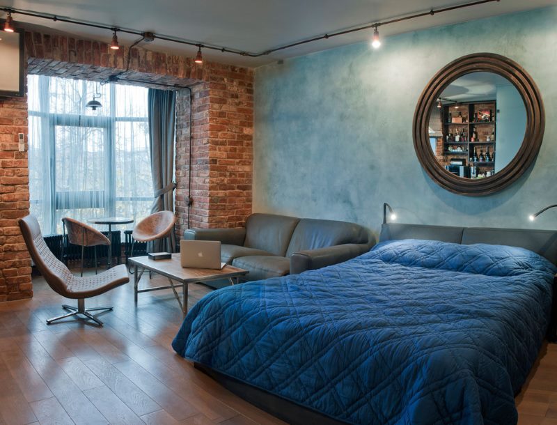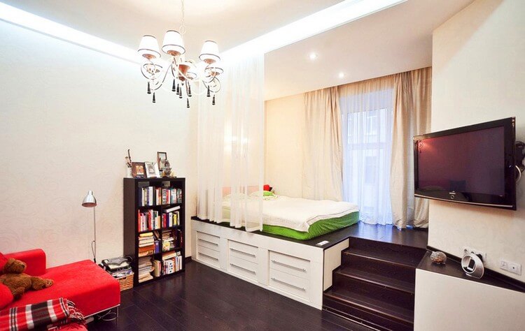 Aménagement intérieur réfléchi d'une pièce de 18 m². pour le salon et la chambre rendra la pièce originale, confortable et chaleureuse.