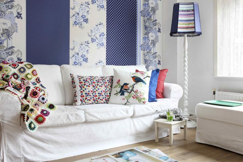 Une bonne solution consiste à répéter l'accent dans le décor - sur les coussins du canapé, les bordures étroites, les cadres.