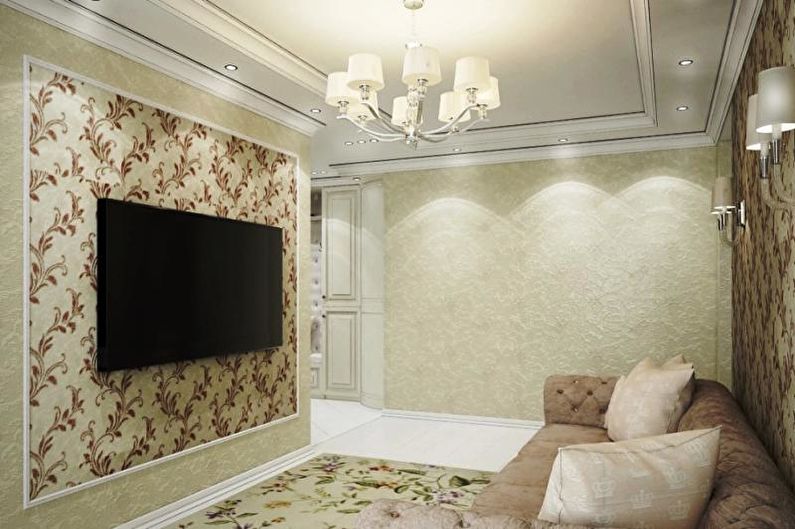 - Options de conception pour le salon avec du papier peint combiné. Sélection de photos