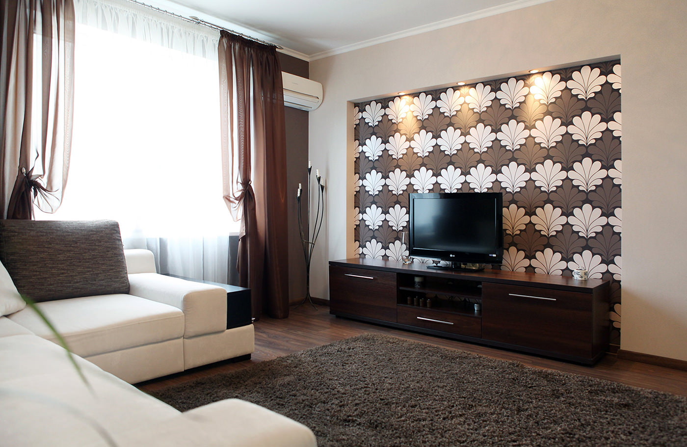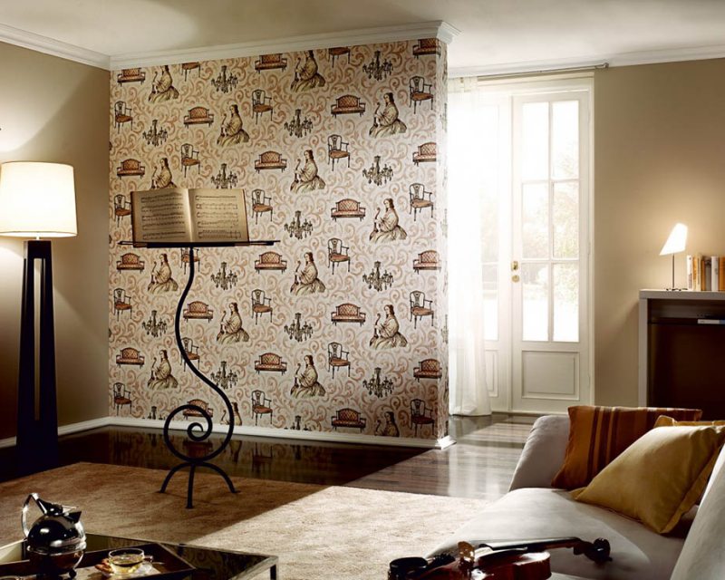 En utilisant la bonne combinaison de papier peint, vous pouvez facilement créer une atmosphère festive dans le salon, donner à la pièce une personnalité et parfois l'agrandir visuellement.