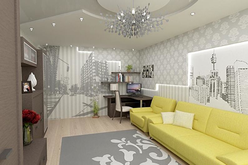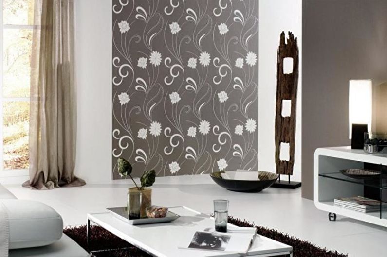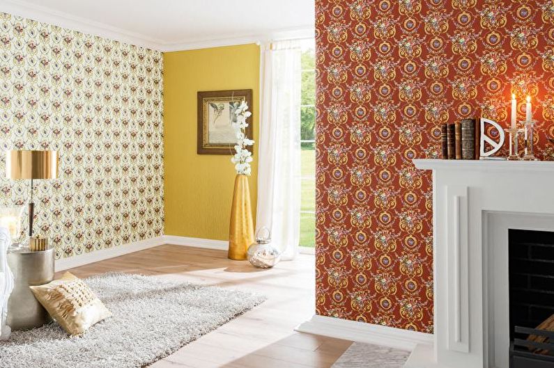 La salle peut être décorée dans une seule direction stylistique, ou vous pouvez créer un mélange unique et inimitable. Maintenant, dans le monde moderne, les frontières entre les styles, les tendances de la mode et les méthodes de conception s'effacent rapidement et il est donc difficile de dire comment le faire correctement et à la mode.Sur la base de ce fait, nous pouvons conclure qu'une solution aussi unique et universelle que la combinaison de papier peint convient à tous les styles, du minimalisme au pays.