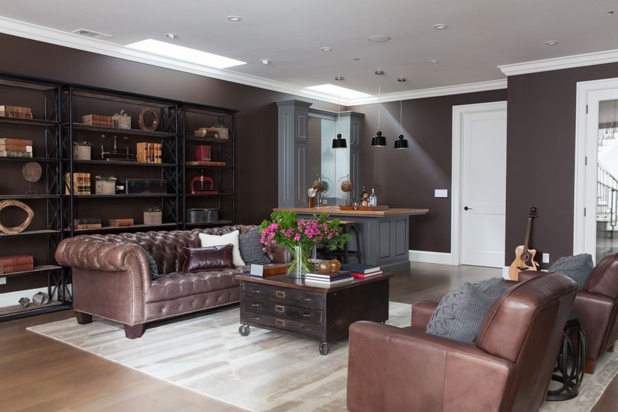 Le plafond du salon peut être facilement «surélevé», ce qui en fait deux teintes plus claires que la décoration murale