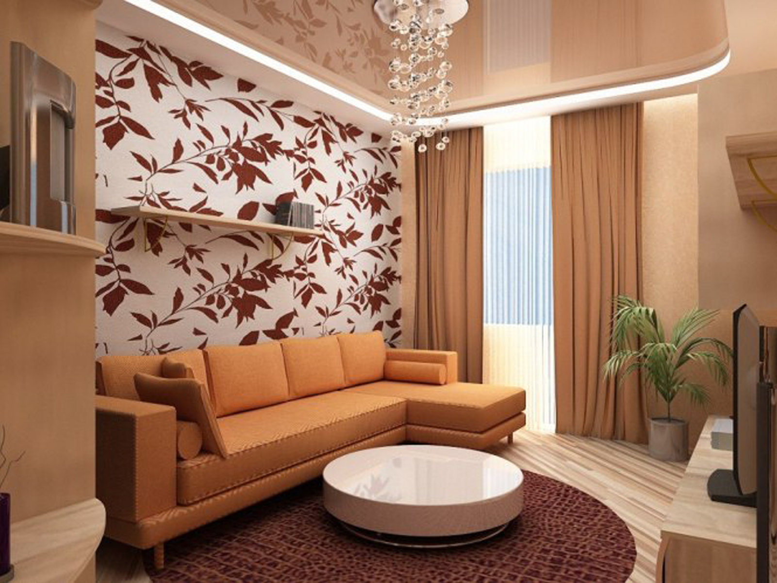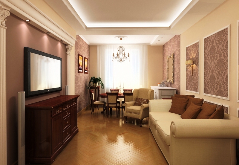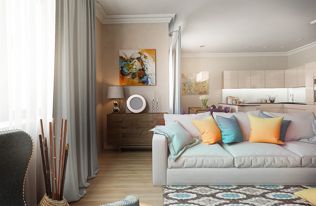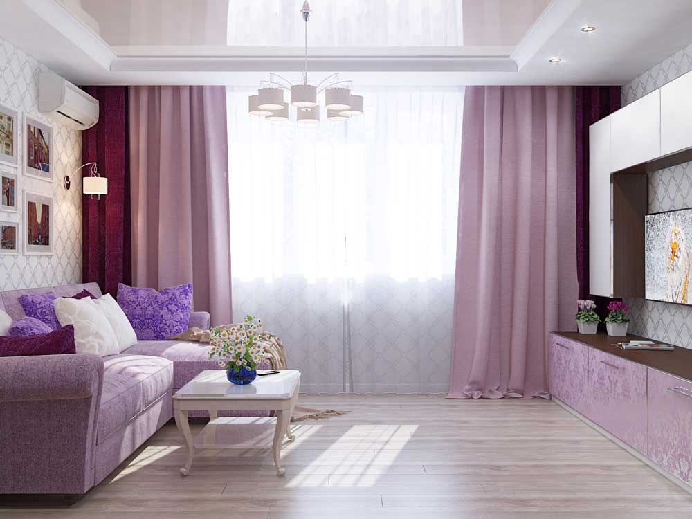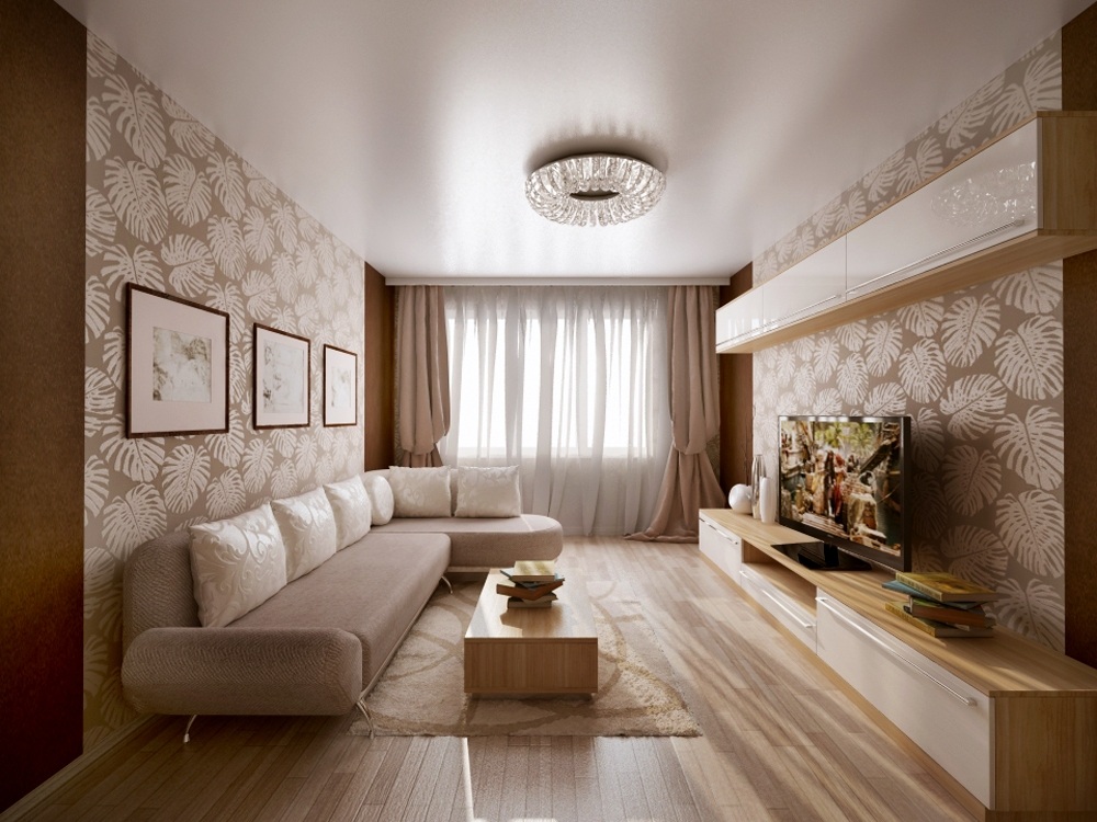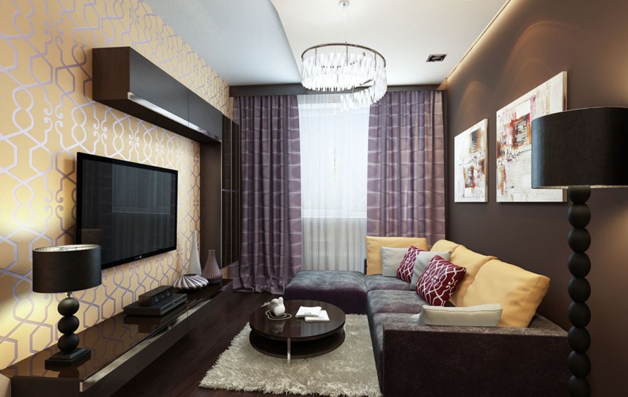 La plupart des designers conviennent que dans la conception de petits salons, privilégiez les couleurs pastel claires. Il peut être: blanc, gris noble, beige délicat, bleu, vert menthe, violet et autres couleurs.