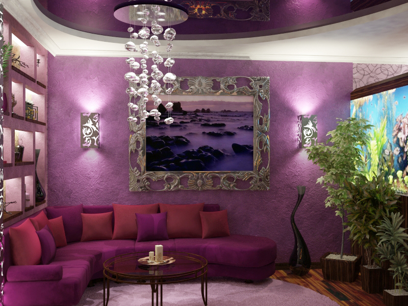 Avec l'aide de fleurs violettes et lilas, vous pouvez créer un design énergique et jeune. Cette palette se marie bien avec le rose, le blanc, le gris.