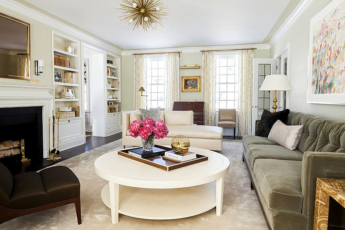 L'agencement symétrique des meubles, souvent utilisé dans les intérieurs classiques, a l'air bien dans la pièce de la bonne forme.