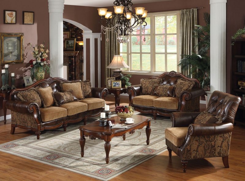 Dans les intérieurs traditionnels, le design de la table basse doit correspondre aux meubles rembourrés
