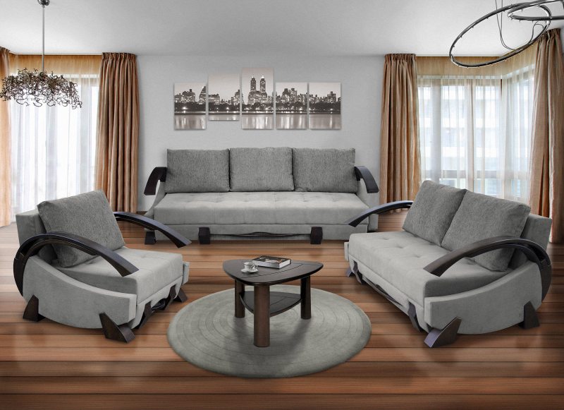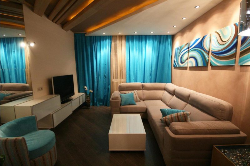 L'intérieur de la salle se compose d'une combinaison de meubles. En plus d'un canapé, d'un placard, des fauteuils sont souvent présents dans les salons typiques. Il n'est pas nécessaire d'utiliser des modèles volumineux classiques. Il existe des endroits supplémentaires pour se détendre de type sans cadre. Des modèles similaires sont étonnamment mobiles et modernes.
