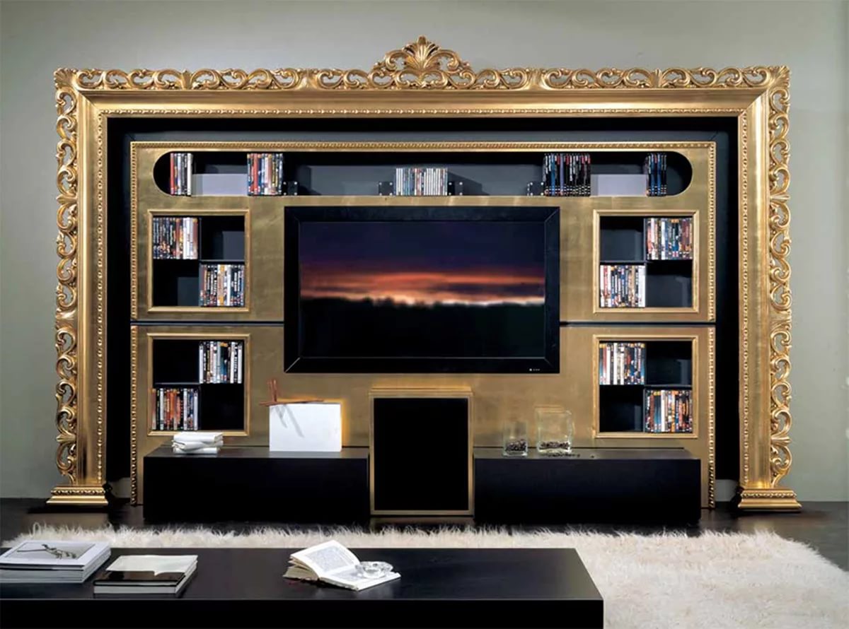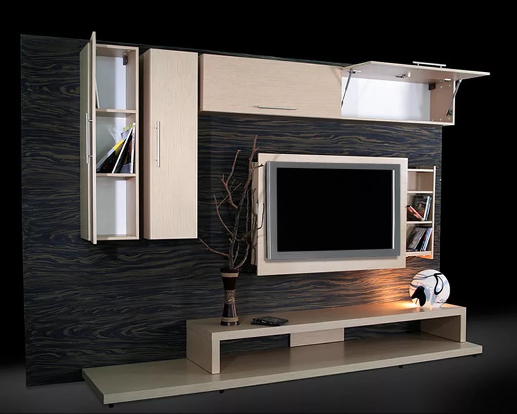 Avec lui, vous pouvez placer non seulement l'un des principaux attributs du salon - une télévision, mais aussi bien d'autres choses.