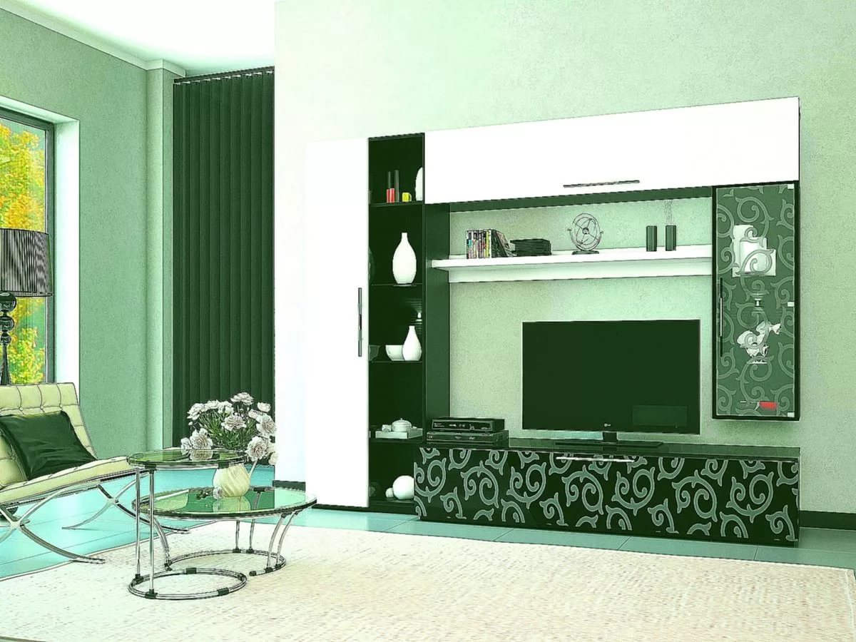 - Un mini mur pour un téléviseur pour le hall est une utilisation rationnelle de l'espace de la pièce.