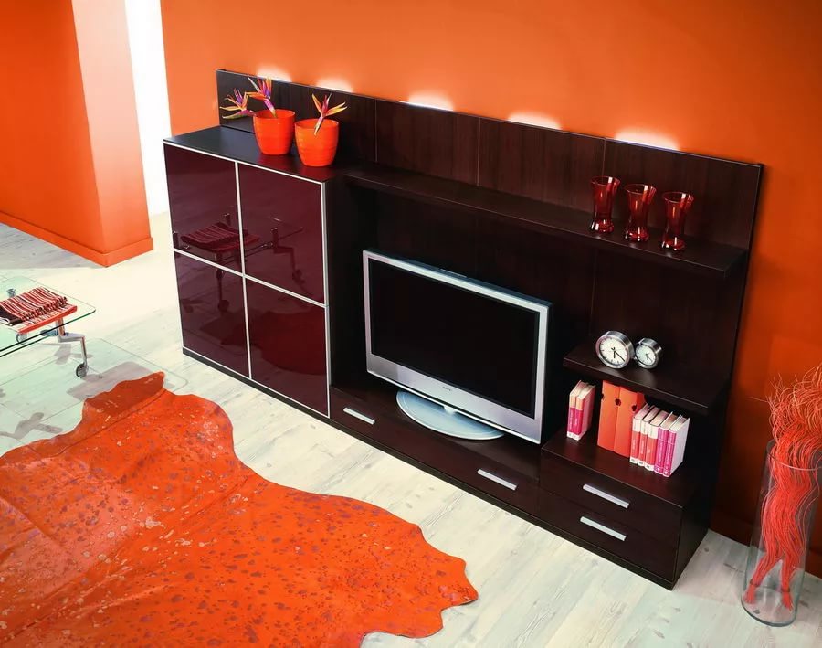 - Sécurité, car les murs des équipements TV, vidéo et audio ont des trous spéciaux pour les fils qui vous permettent de rendre l'intérieur soigné.