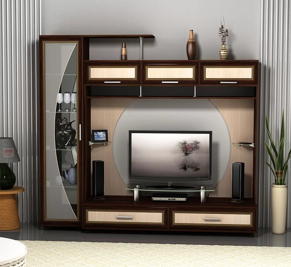 L'avantage de ces modèles est leur haute fonctionnalité. Ce sont des armoires à part entière avec de nombreux espaces de stockage, y compris pour l'installation d'équipements. L'armoire-mur sera le meilleur choix pour décorer la salle dans un style design unique. Ne présumez pas que le mur de la pièce dans un style moderne avec un téléviseur est un meuble de style "soviétique". Aujourd'hui, le marché a une large sélection: des options classiques aux options ultramodernes et aux modèles luxueux. Le boîtier sera un excellent choix pour les "Khrouchtchev" de petite taille.