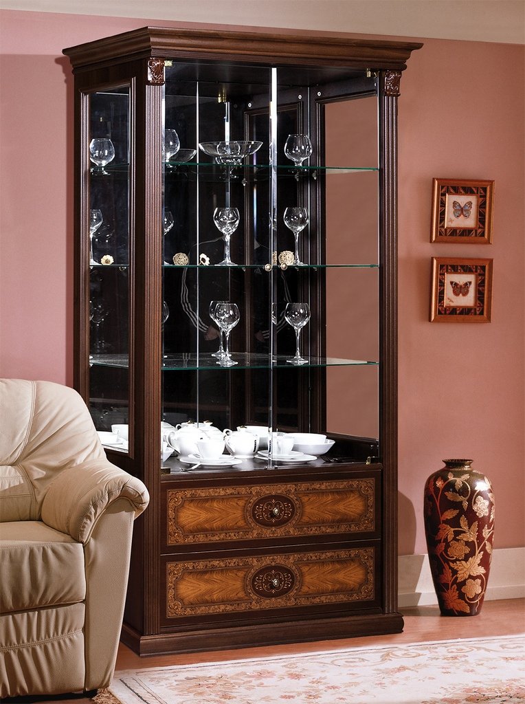 La vitrine vous permet non seulement de montrer de beaux plats aux invités, mais c'est aussi une décoration de l'intérieur du salon