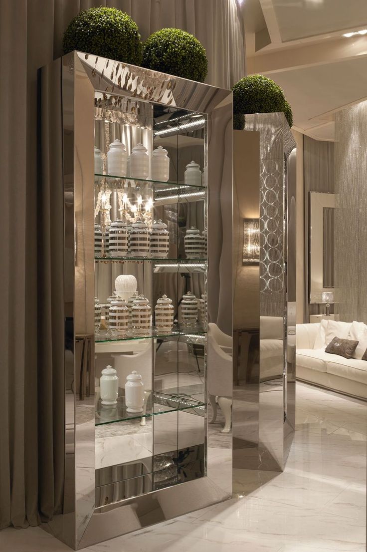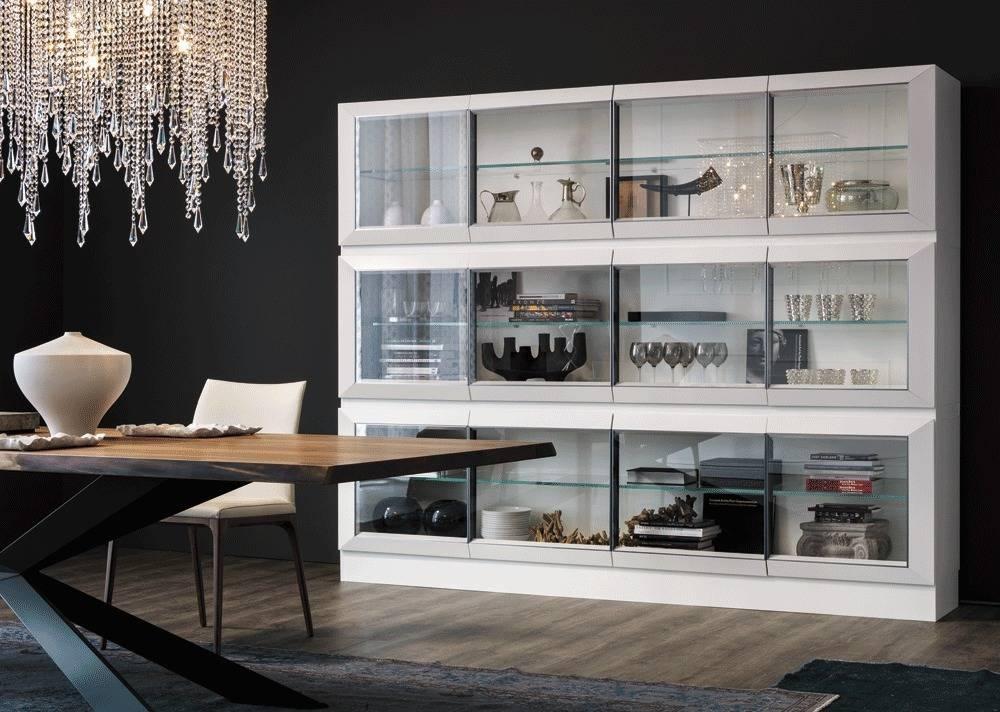 - Une vitrine en verre pour un salon est souvent utilisée pour montrer et stocker de beaux plats.