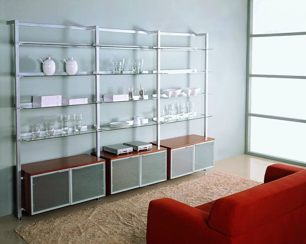 - L'une des variétés est le rayonnage (entièrement en verre).