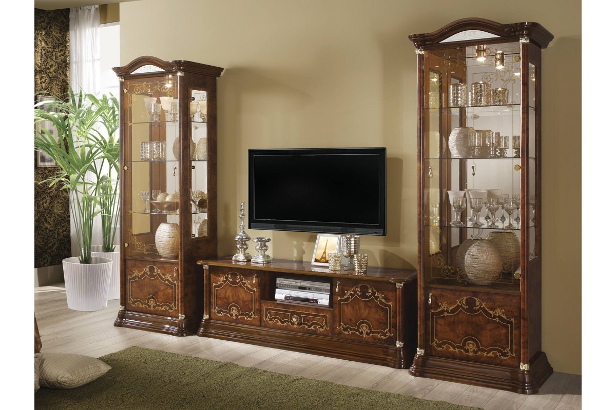 Vitrines lumineuses sur les jambes bouclées dans un salon de style classique