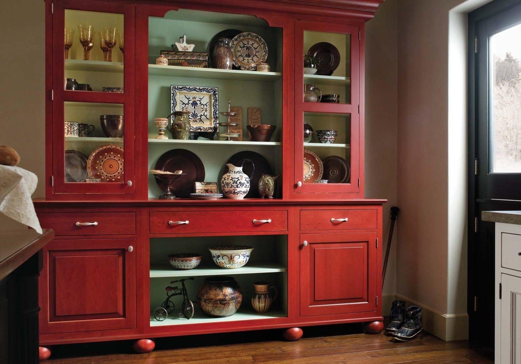 Pour créer une excentricité à l'intérieur, vous pouvez utiliser des vitrines de couleurs vives. De plus, ils peuvent être soit un casque entier, soit une armoire indépendante. Look intéressant vitrines jaunes, framboises, bleues, vert clair.