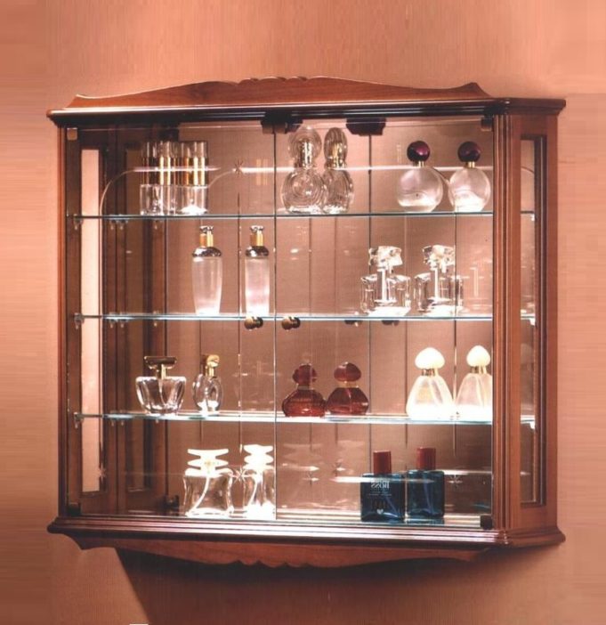 - L'affichage de coin en bas est généralement fermé par un châssis terne et au-dessus des étagères en verre.
