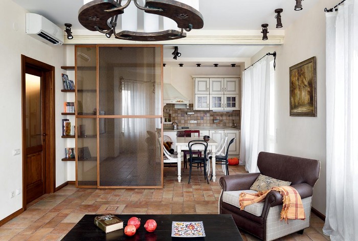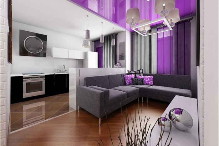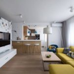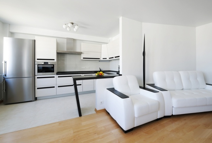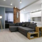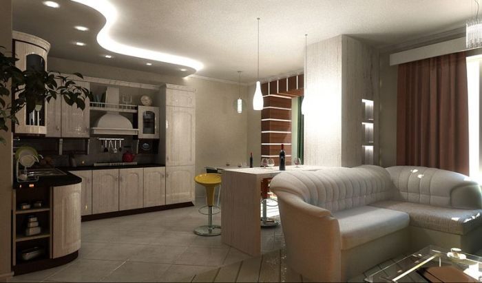 Maintenant, de nombreux développeurs proposent des studios dans lesquels vous pouvez planifier votre espace comme vous le souhaitez. Beaucoup nettoient les murs entre le salon et la cuisine, combinant ces zones en une seule pièce, ce qui augmente visuellement la superficie de l'appartement. Lors de la replanification, vous devez zoner correctement la pièce dans des zones distinctes que vous souhaitez mettre en évidence. Il y a beaucoup d'options pour séparer la cuisine et le salon, nous analyserons les principales.