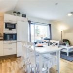 - Séparez l'espace cuisine avec un petit podium et posez un tapis sous la table à manger en un seul design. Et un espace sera perçu différemment.