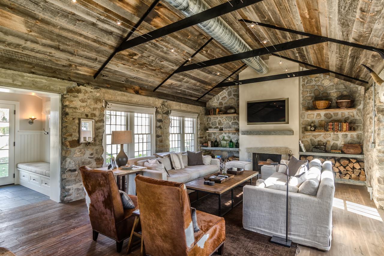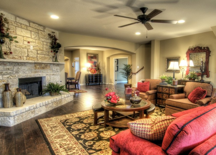 Dans une maison privée, la conception du salon a ses propres nuances. Typiquement, une telle pièce est située au rez-de-chaussée, a des dimensions importantes. De nombreux propriétaires en font une sortie directe sur le jardin. L'espace est éclairé par la lumière naturelle, donc un minimum d'éclairage est utilisé. Seuls les matériaux naturels sont applicables pour le travail. Ils sont chers. Les propriétaires doivent être préparés aux coûts importants des matériaux. Comme matériaux principaux, vous pouvez utiliser du bois, du bambou, de la pierre, de la vigne. La finition naturelle vous donne la possibilité de vraiment découvrir l'atmosphère naturelle, facilite la respiration, améliore l'humeur. Pour ces raisons, de nombreuses personnes achètent une maison privée.