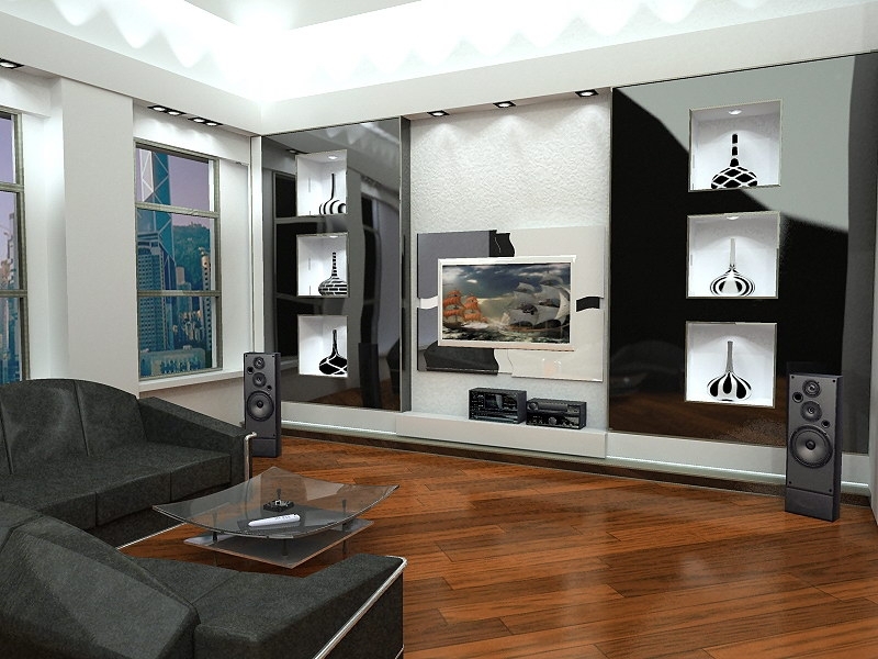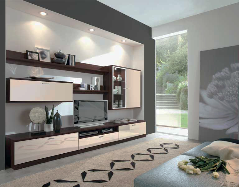 Le centre du salon peut être un beau mur de meubles et une grande télévision
