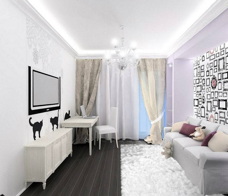 - N'achetez pas beaucoup de meubles. La fonctionnalité est observée en présence d'un grand espace dans la pièce. Un canapé, une télévision, une table basse, un placard suffiront pour la chambre.