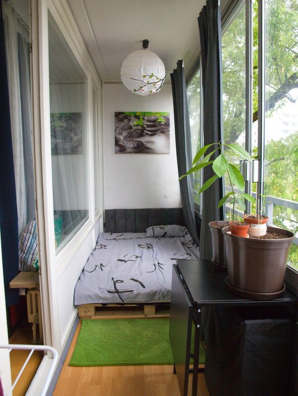 Une couchette sur le balcon est une idée très intéressante, digne d'un examen détaillé.