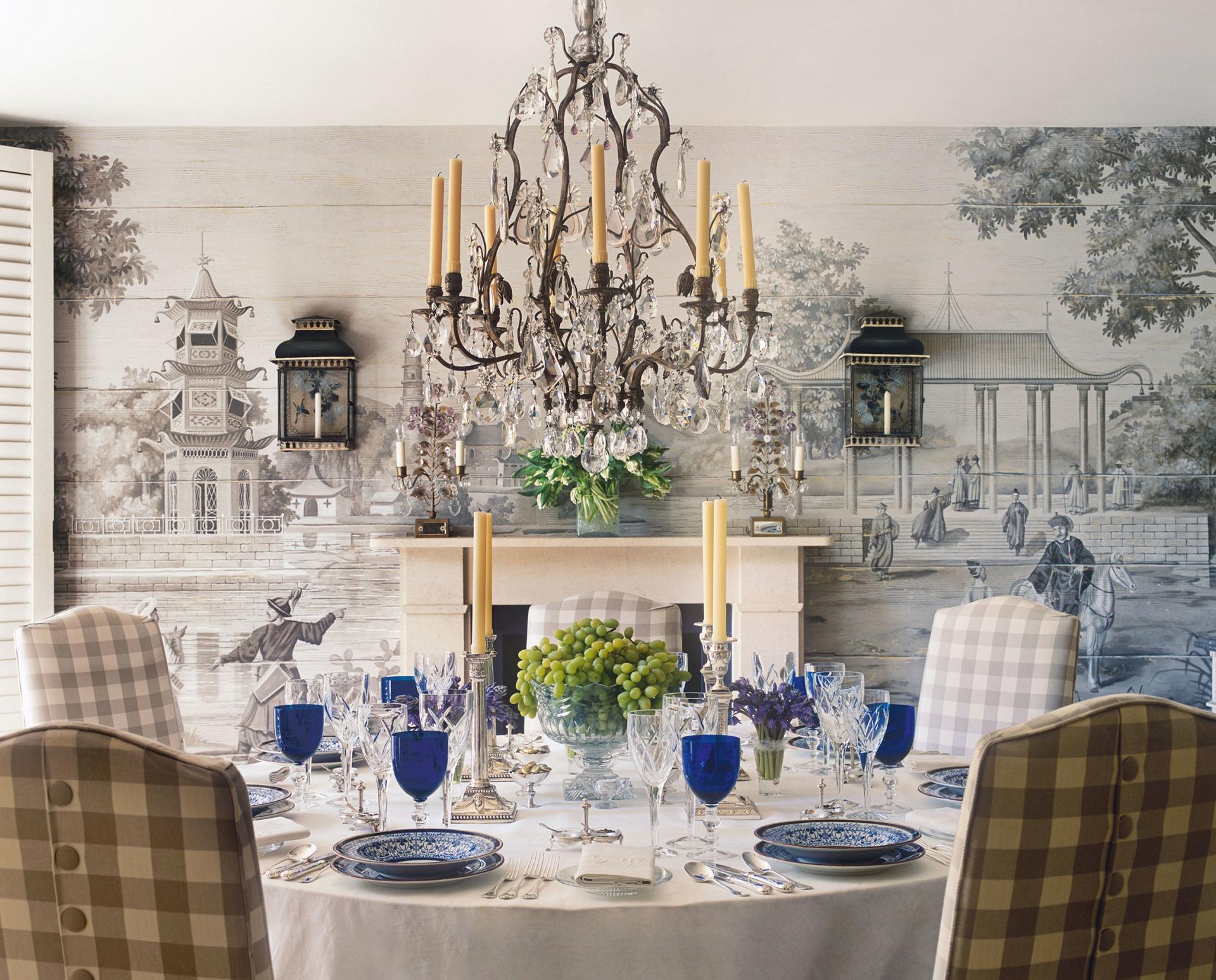 - revêtements muraux texturés à rayures verticales, monogrammes, motif cachemire, petits imprimés floraux et tableaux de tracé ressemblant à une tapisserie;