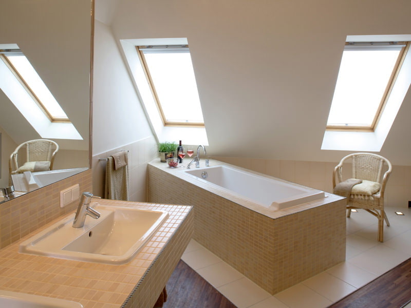Il est nécessaire de prendre en compte la façon dont le grenier la fenêtre offre un accès naturel à la lumière dans la salle de bain mansardée. Si nécessaire, il peut être étendu. Cela simplifiera le problème avec à la fois l'éclairage artificiel et la ventilation.