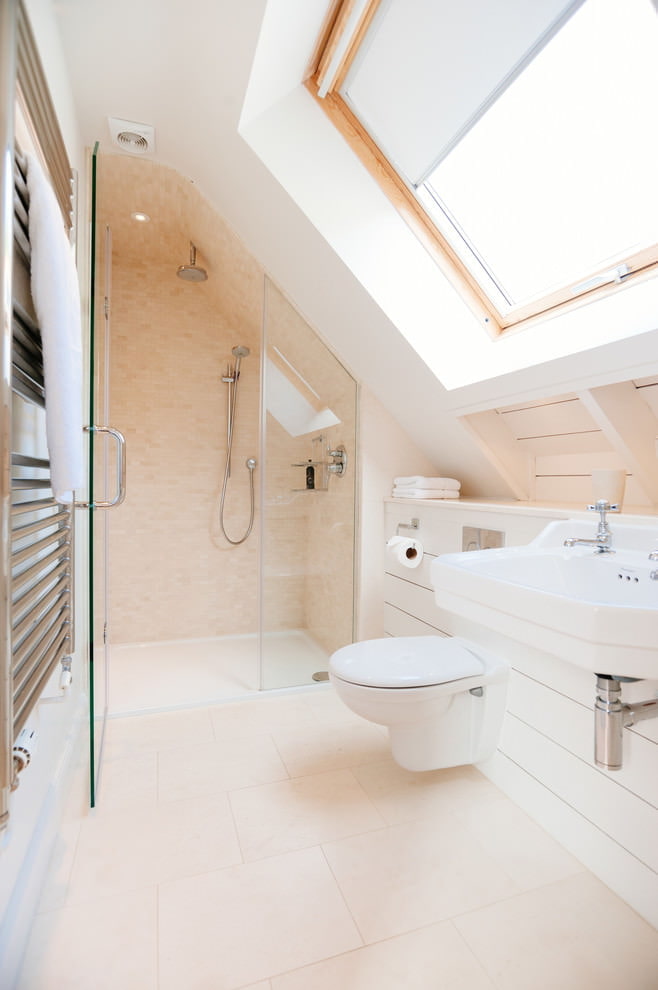 - Si la fenêtre du grenier ne crée pas le flux d'air nécessaire, une ventilation supplémentaire doit être équipée. Dans tous les cas, pour que la salle de bain ne souffre pas d'humidité, il convient de prendre soin de la hotte.