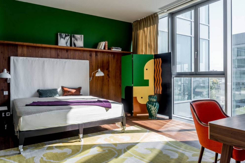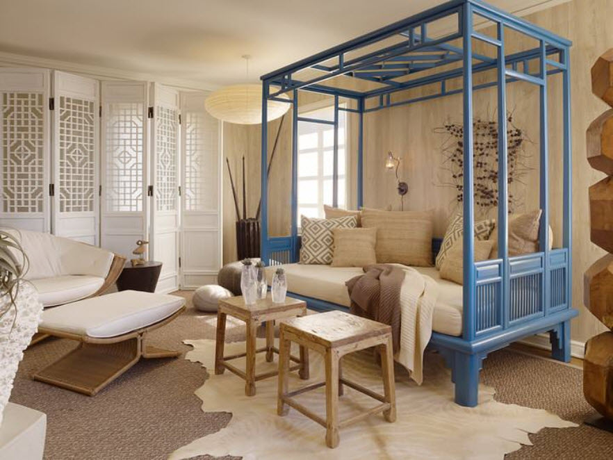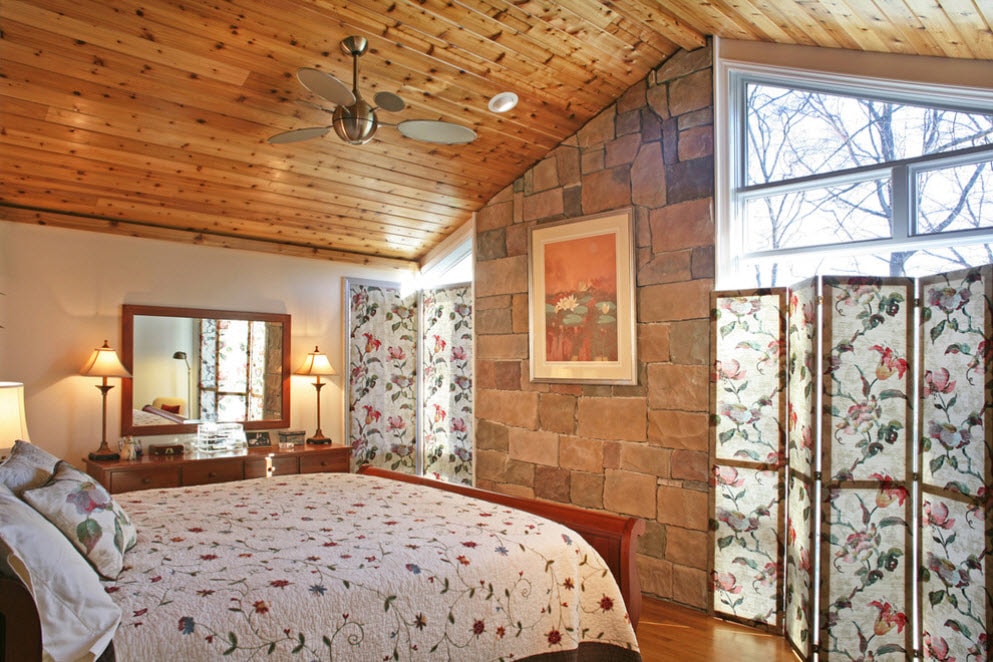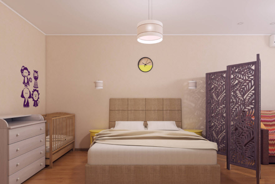 L'écran s'intégrera harmonieusement à l'intérieur de la chambre à coucher si la conception de la cloison trouve une réponse dans tous les autres éléments de l'intérieur de la pièce