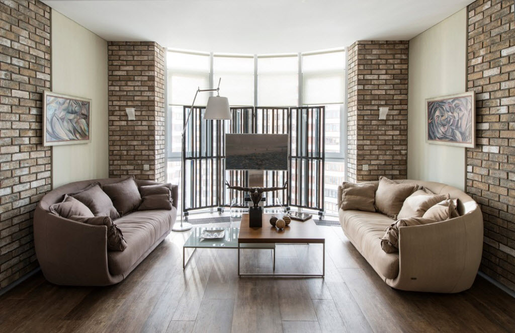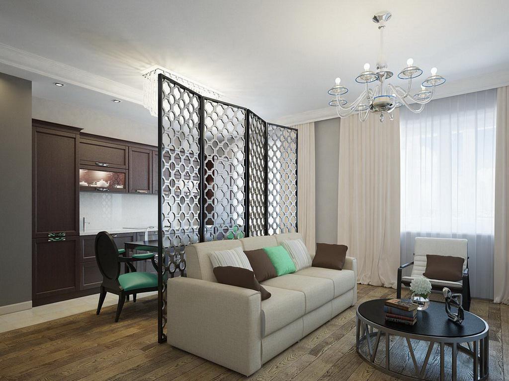 En utilisant l'écran coulissant de la cloison pour le salon, vous pouvez diviser en zones fonctionnelles - pour séparer l'espace détente de la salle à manger, de travail ou de couchage, si nécessaire.