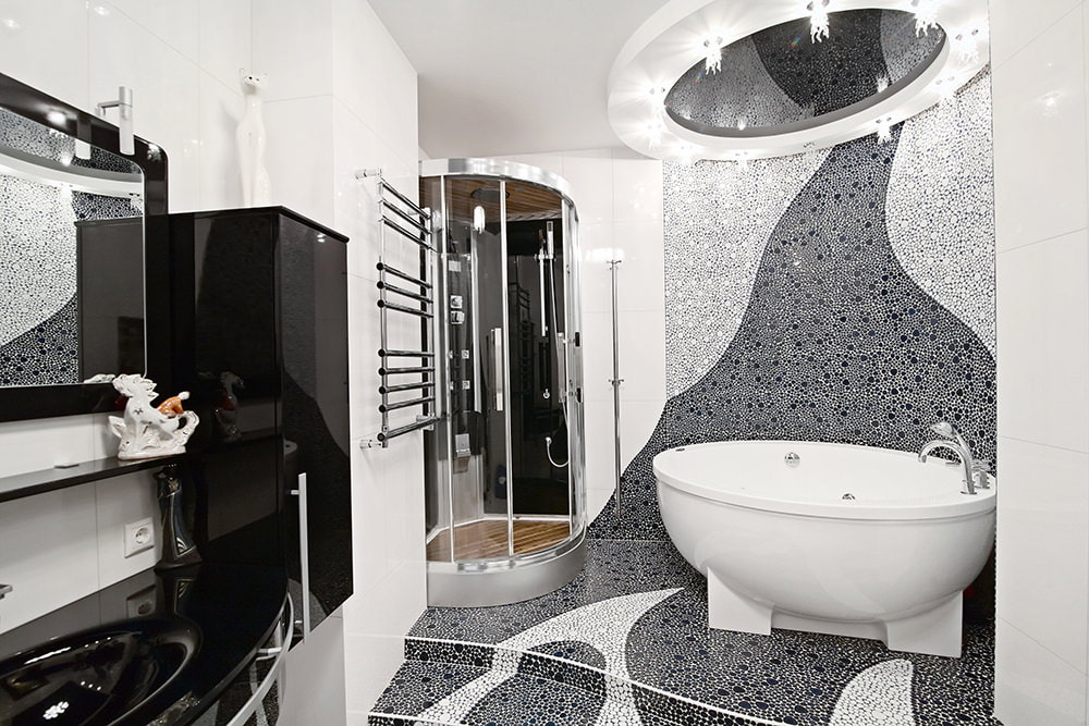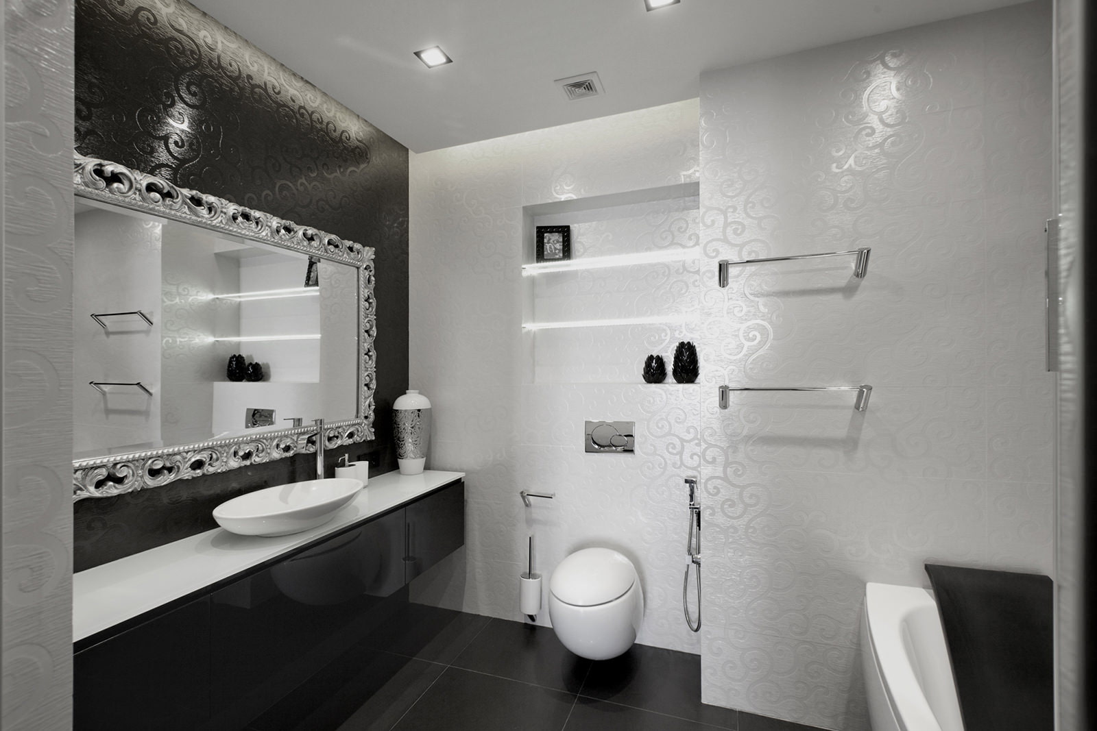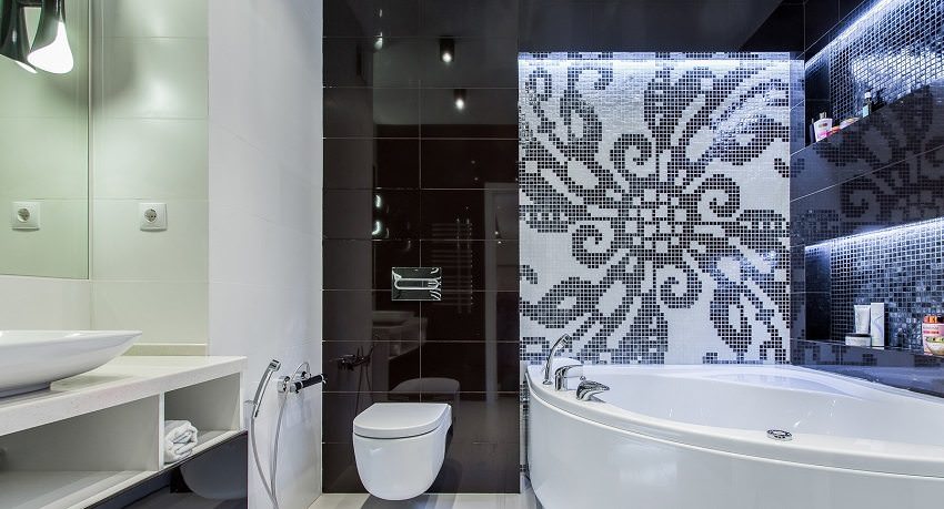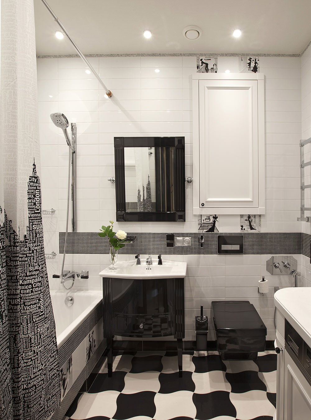 La façon la plus simple de transformer une salle de bains blanche standard dans un appartement typique en quelque chose de nouveau et d'intéressant est peut-être de la compléter avec du noir.