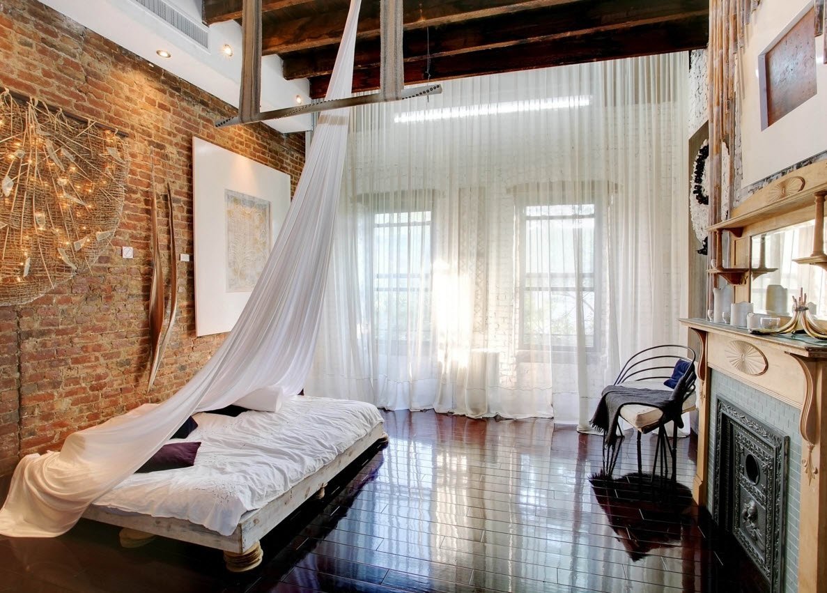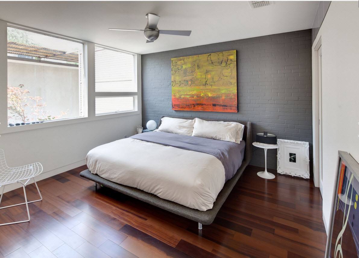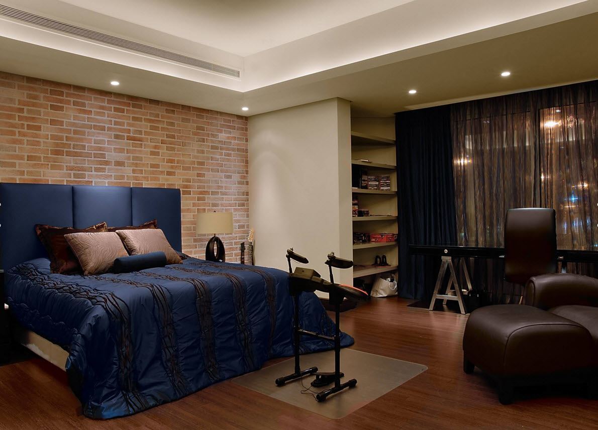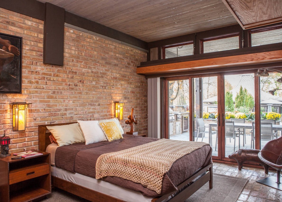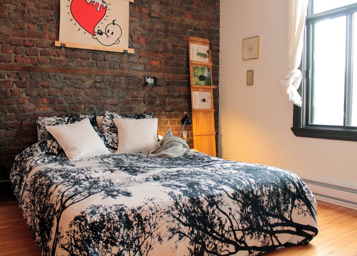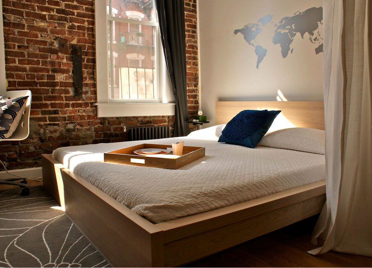 L'une des façons les plus courantes d'utiliser un mur de briques dans une chambre est de concevoir la surface derrière la tête du lit.