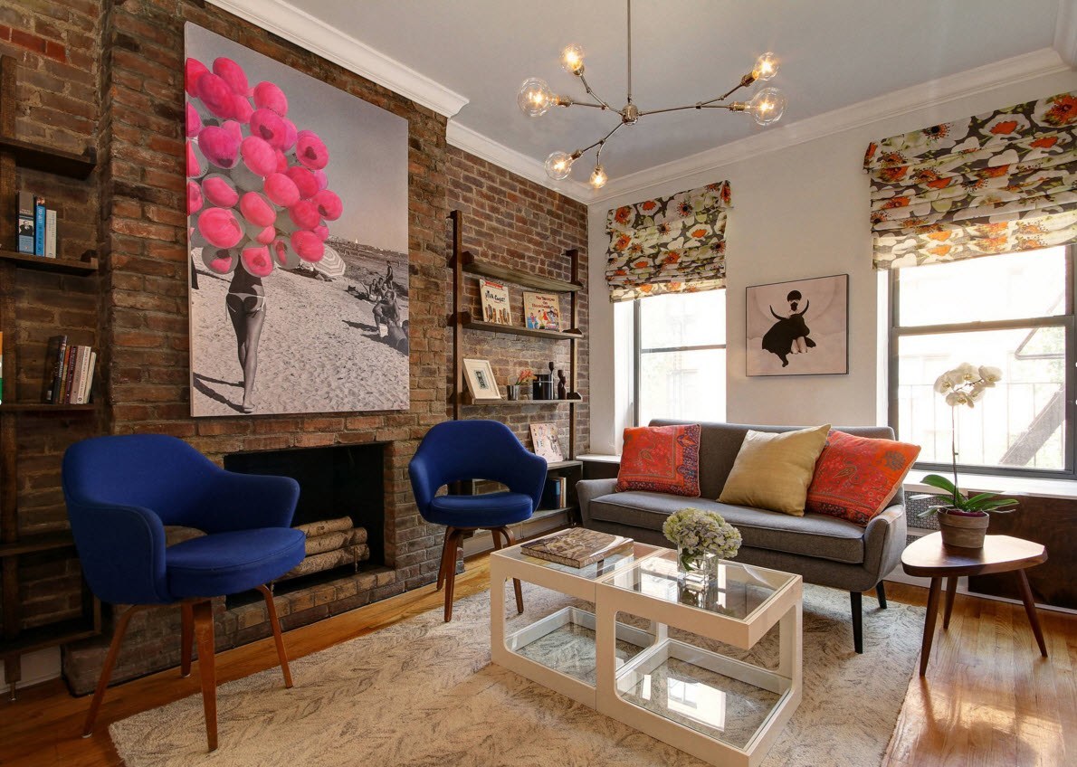 - Pop art. Une caractéristique de ce style est le jeu des contrastes, de sorte que la pierre s'intégrera parfaitement à l'intérieur. Le badigeon est autorisé.