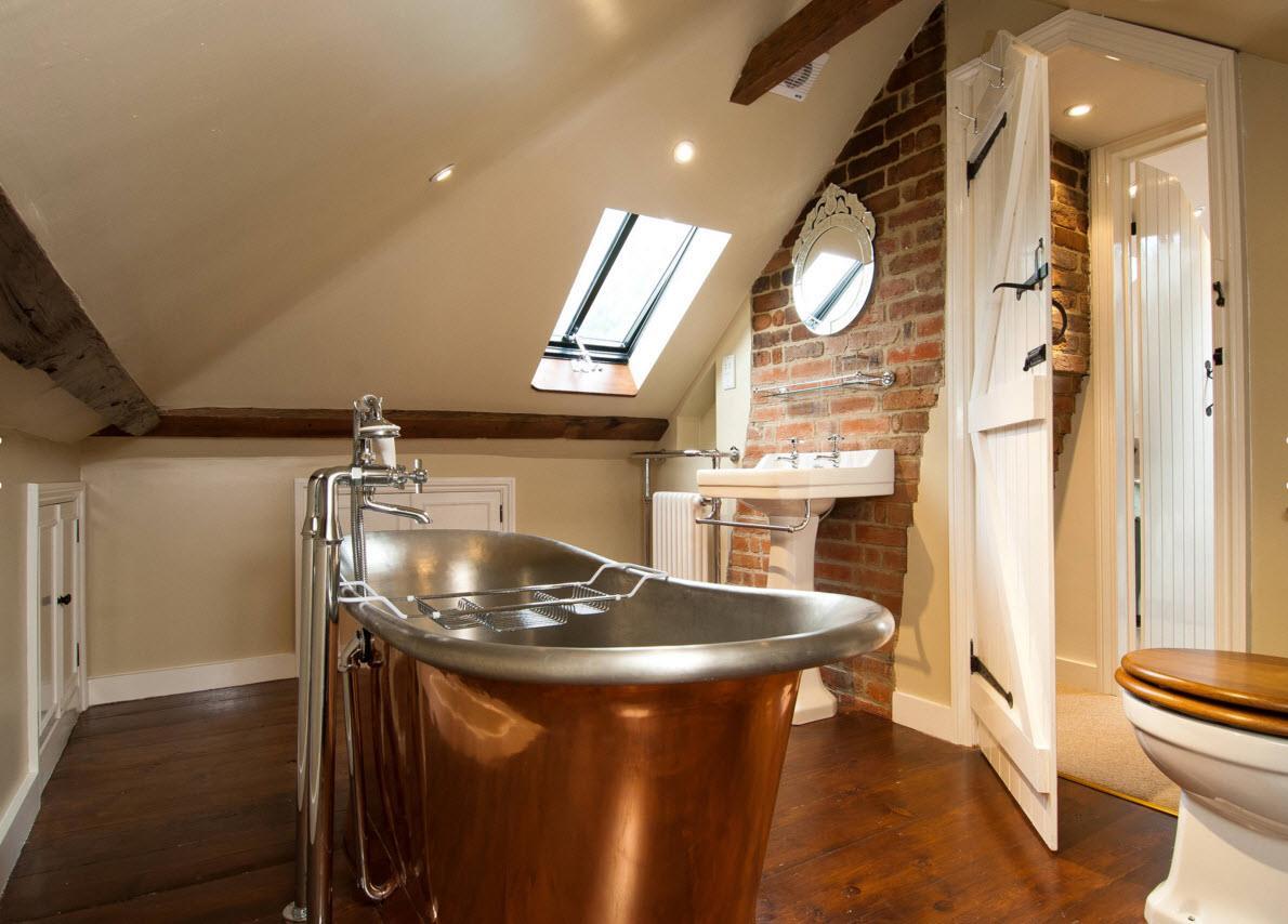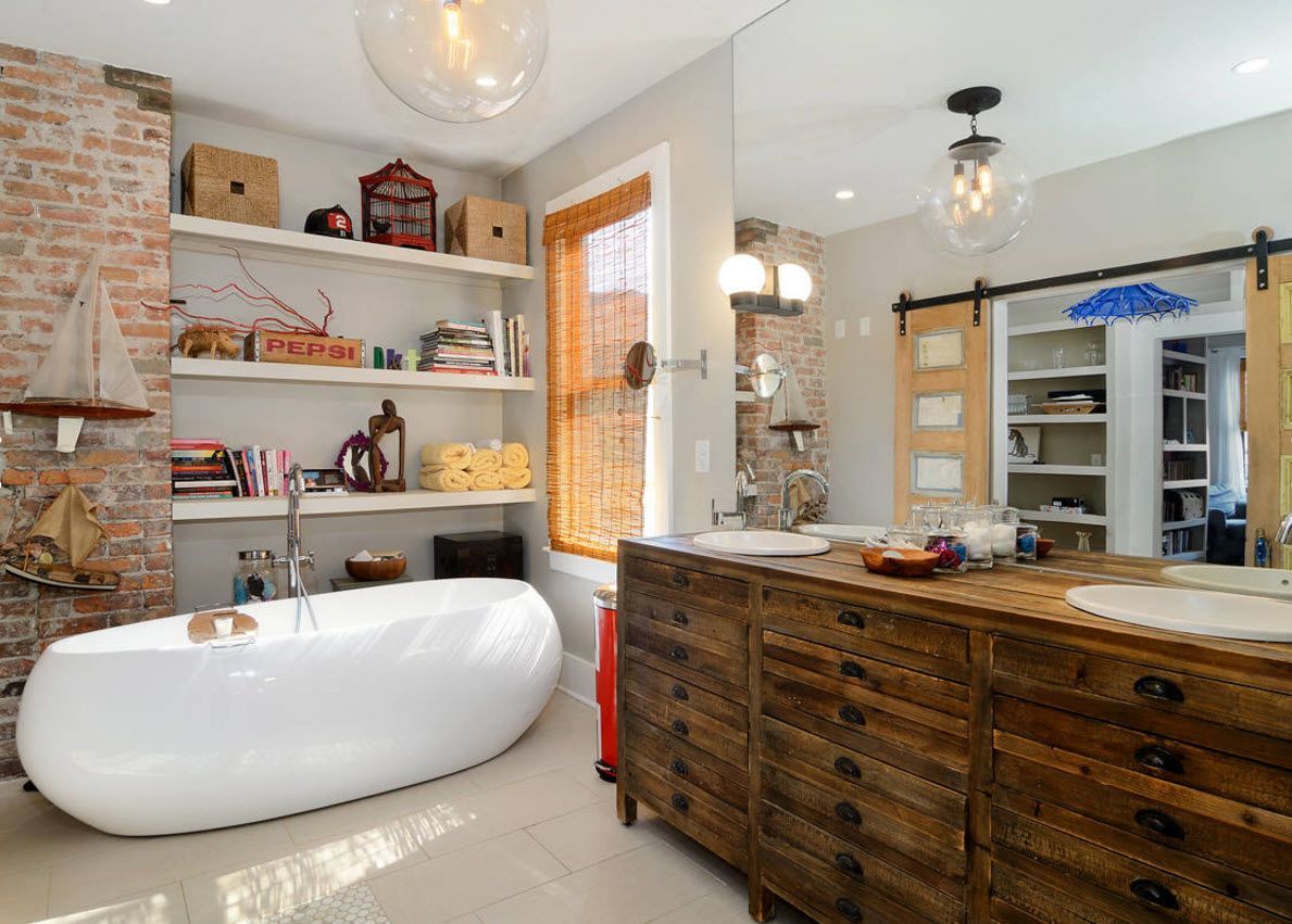 Dans une telle pièce, une brique sera une excellente solution pour décorer les murs ou des éléments intérieurs individuels, comme une baignoire. La couleur claire donnera de l'espace et du confort à la pièce, lorsque l'obscurité crée une atmosphère de brutalité et de conservatisme.