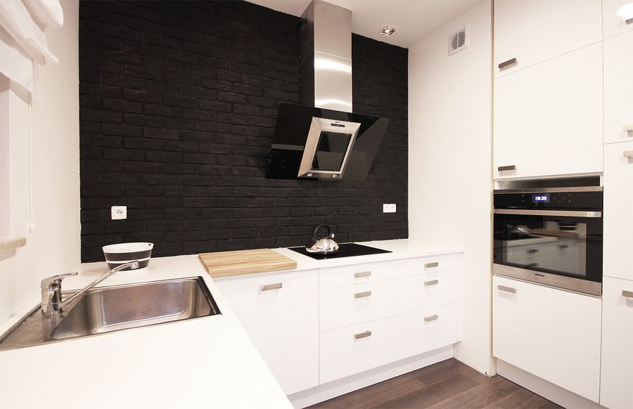 - Réduction de l'espace. La maçonnerie rend visuellement la pièce plus petite. Seule la couleur blanche, qui agrandit visuellement l'espace, peut sauver la situation.