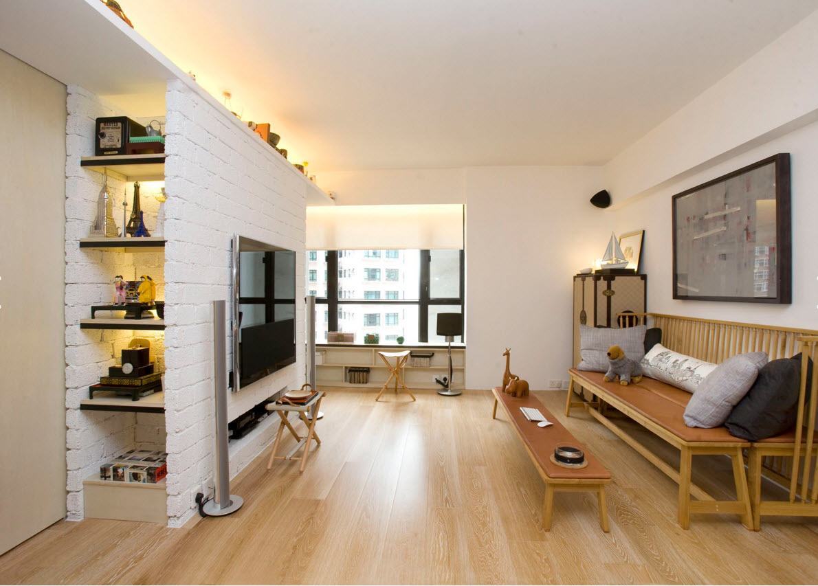 L'intérieur des appartements en brique aime la modération, vous ne devez donc pas pierre tous les murs, sinon la pièce sera froide et inconfortable. Les bonnes options de décoration sont: